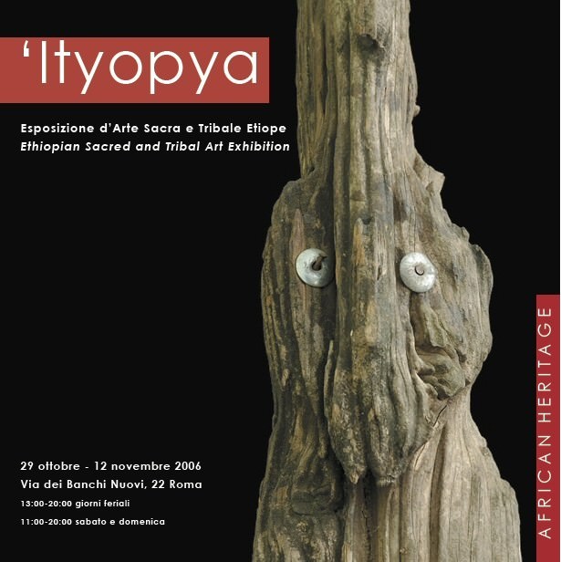 L’esposizione, in Via dei Banchi Nuovi 22, terminerà il 12 Novembre e vedrà esposti sia oggetti della tradizione Cristiana etiope, come antichi manoscritti miniati e croci da processione, sia oggetti tribali come le famose statue funerarie dei Konso, ed altri oggetti storici provenienti da collezioni private.