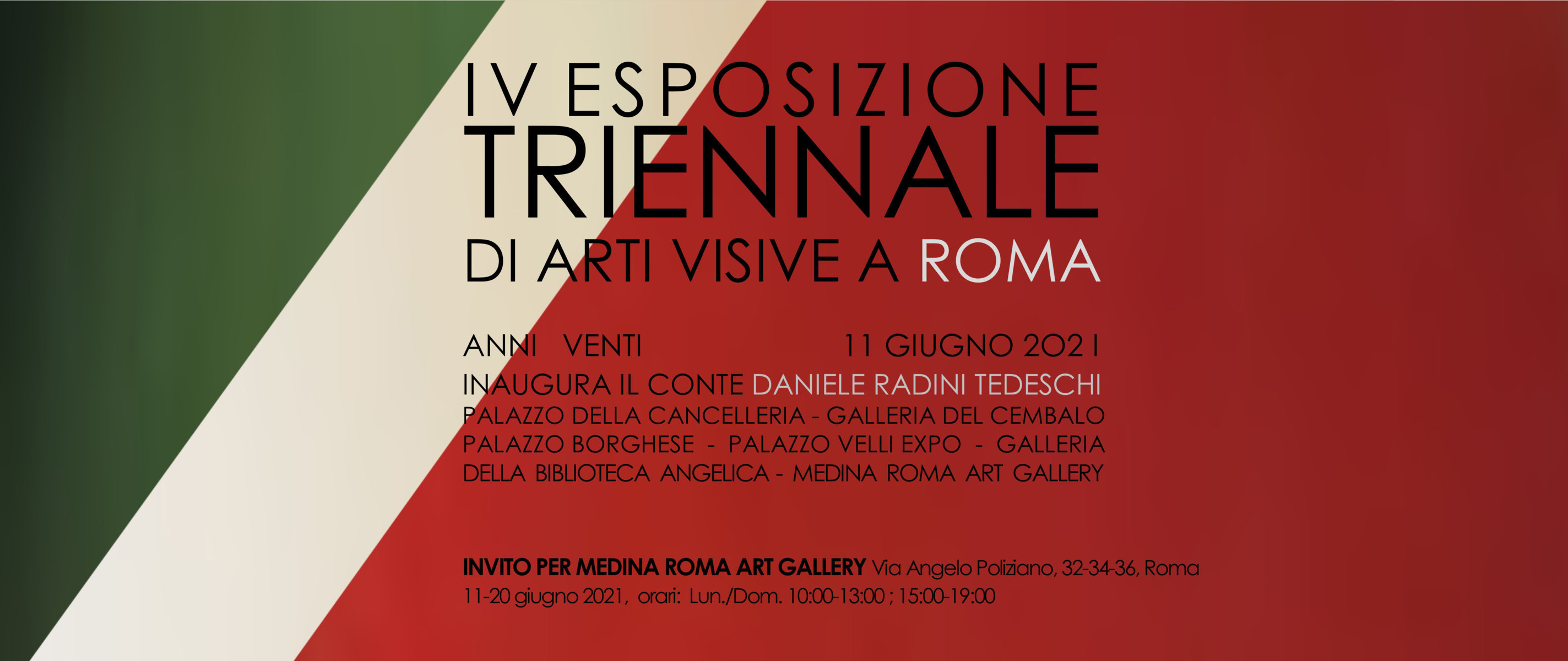 Il tema della IV Esposizione Triennale di Arti Visive a Roma è “Global Change” e viene trattato l’attuale cambiamento culturale, ambientale e alimentare degli anni ‘20 con la direzione artistica di Mario Bernardinello. La Galleria Medina ospita una delle sedi della mostra con le opere di 34 artisti.