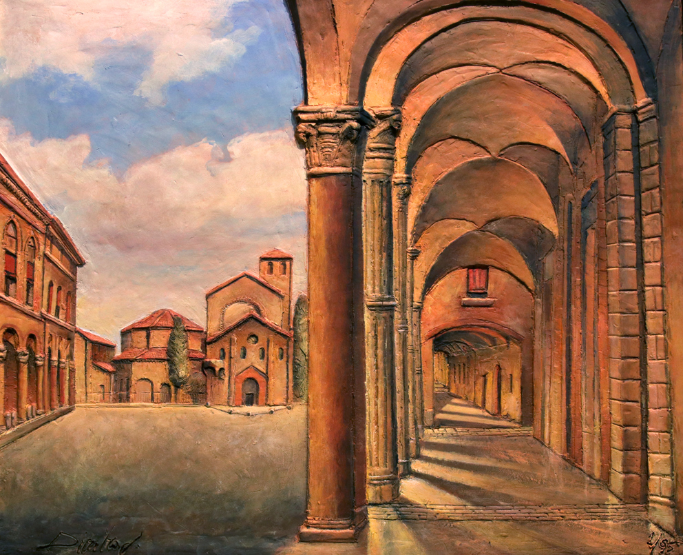 La mostra è un omaggio alla nostra città ed ai suoi portici: “E’ una Bologna trascorsa ma sempre attuale, un rifugio di serenità e pace che facilmente diventa sentimento e trascolora in poesia dolce, sincera, mai scontata. L’evocazione di Dimitrov è anche magia. Trasforma il vero dei portici, dei vicoli umili, dei muri sbrecciati, dei palazzi storici nella sorpresa della scoperta, nell’incanto del gioco di ombre e riverberi, nell’inatteso delle fughe di colonne. Non si sovrappongono presenze umane per non travisare il rapporto diretto con portici e case che vengono apprezzati nella loro intima realtà. Colti in un’ora meridiana, caldi di luce ferma, di riflessi dorati sui riarsi colori bolognesi, portici, cortili e tetti, avvolti nel silenzio, diventano uno stato d’animo, un’eco di nostalgia e tenerezza: il capolavoro di secoli di esistenza e la più efficace presentazione del cuore di Bologna”. (Celide Masini).