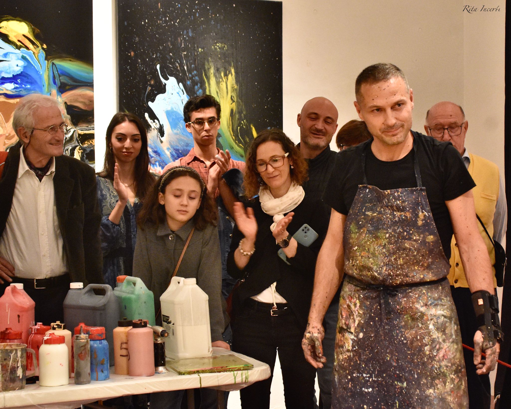 Le opere in mostra ,realizzate con una particolare tecnica, ripercorrono la sperimentazione dell’ artista negli anni. Durante il vernissage, sarà realizzata un’opera dal vivo.