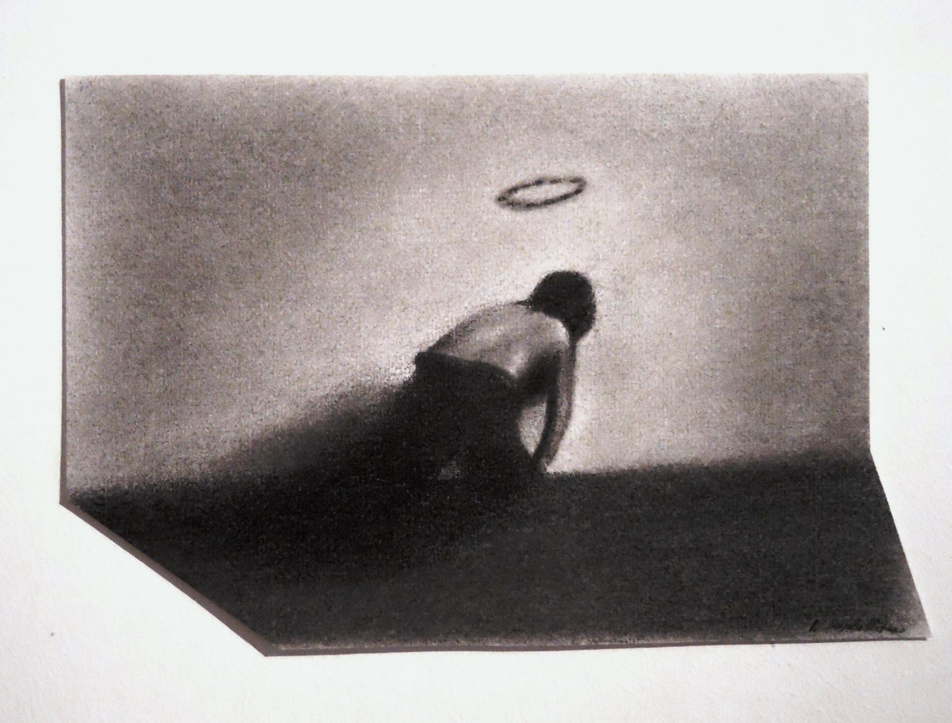 I soggetti delle opere, tutti realizzati a carboncino su carta a volte ritagliata , sono attinti da foto documentaristiche (felini) o di cronaca rese completamente sature, sino ad arrivare ad un assoluto bianco-nero.