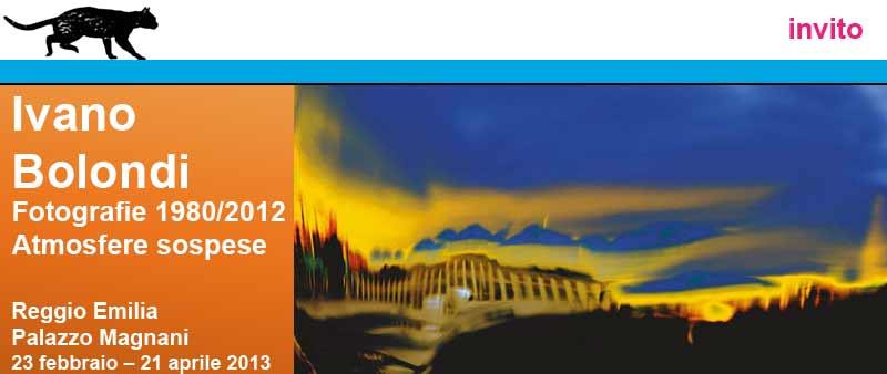 La Fondazione Palazzo Magnani dal 23 febbraio al 21 aprile 2013 promuove un importante appuntamento con la fotografia. La cinquecentesca sede espositiva ospiterà la mostra "Ivano Bolondi. Fotografie 1980/2012. Atmosfere sospese" che, nell'ottica della valorizzazione delle eccellenze del territorio - uno degli obiettivi che la Fondazione ha posto tra i punti di azione all'interno del proprio progetto culturale -, intende celebrare il grande fotografo reggiano Ivano Bolondi.