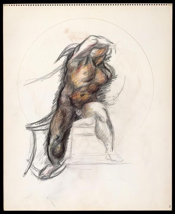 Il titolo della mostra, infatti, La figura della furia, vuole essere un riferimento allo stesso Pollock, alla sua figura nell’atto di dipingere le tele girandogli intorno, pervaso da impeto passionale e da un furore dinamico come in un rituale sciamanico. Al tempo stesso quel titolo allude all’espressione “La furia della figura” citata nel ‘500 dal teorico e pittore Giovanni Paolo Lomazzo (1584) quando volle descrivere “la maggior grazia e leggiadria che possa avere una figura” pittorica o scultorea, che potesse essere realizzata dagli artisti del suo tempo”. Ed evidenziò che ciò che dava queste qualità è che la figura mostri di muoversi in un moto simile alla fiamma “… la quale è più atta al moto di tutte, perché ha il cono e la punta acuta con la quale par che voglia rompere l’aria ed ascender alla sua sfera”. Quel movimento spiraliforme, quella dinamica bellezza, fatta di parti non-finite e di forze contrapposte che Michelangelo conferiva alle sue figure con una lavorazione fisicamente travolgente e di cui il Genio della Vittoria è uno dei maggiori paradigmi. In questo senso è proprio la “furia” della figura creata da Michelangelo che si traspone in Pollock nell’atto di creare quel nuovo tessuto di segni che, se disgrega il mondo figurativo tradizionale, assegna una nuova immagine a quella intima potenza e a quella furia nella pittura.