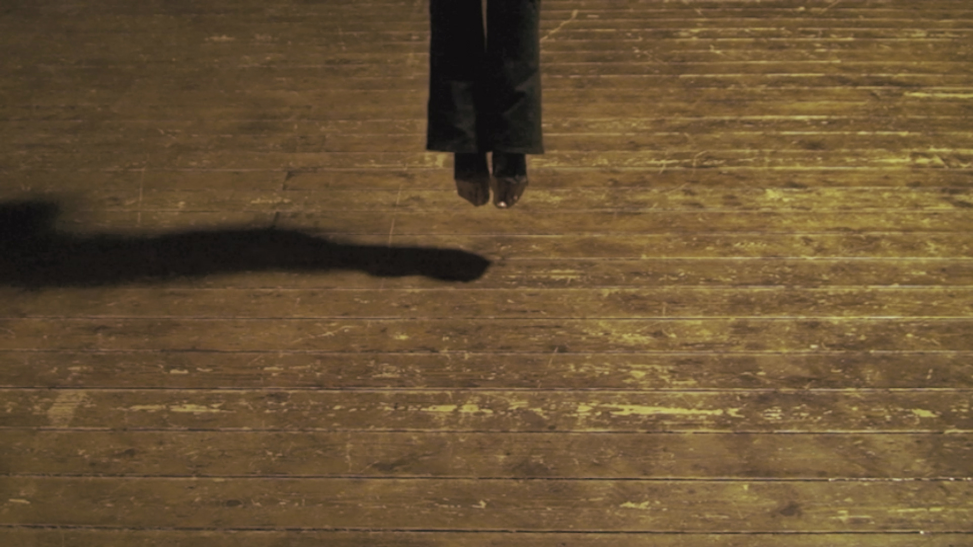Il video È là che io vado (2016) si concentra sul movimento di un’acrobata (Alessandra Lanciotti), la cui voce fuori campo enuncia alcuni passi dall’omonimo testo di Lispector (1974), scelti e ricombinati da Benci. La videocamera segue, alternativamente, la performer e la sua ombra gettata sulle assi di legno del pavimento. Una sorta di gioco visivo, tra la gravità che domina l’allenamento e la dimensione aerea e immateriale dell’ombra: quest’ultima in particolare evoca una serie di rimandi a figure angeliche, all’Ariel shakespeariano, ai teatri delle ombre, alla ricca fenomenologia dell’installazione multimediale. (www.jacopobenci.com).