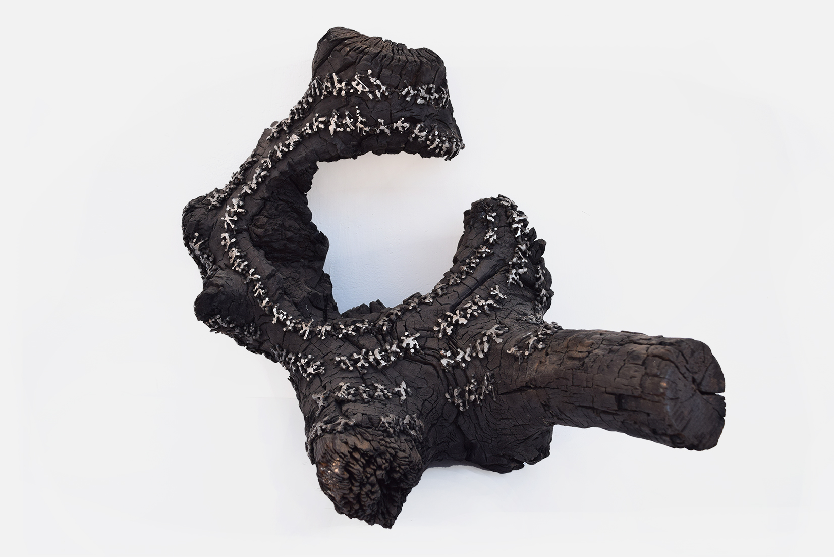 Pertanto, la fusione alchemica tra le materie, da sempre presente nel lavoro di Mandich, dà vita in questa occasione a qualcosa di diverso; il ferro si innesta nel legno creando un alfabeto immaginario e mendace, il tentativo di decodificazione rappresenta uno sforzo, forse vano, ma necessario, di ritrovare le nostre radici.