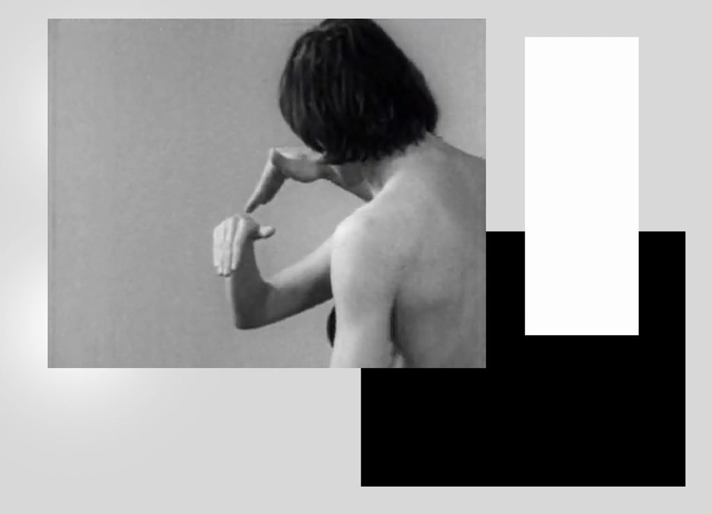 As the artist points out, “the use of the actor’s body and physical presence as a narrative means of expression are one of the main characteristics of Poor Theatre”, which calls for “scenery stripped of descriptive decoration”, and revolves around the actor’s body. This was what he wanted to re-examine, or to put back “on stage” again. It is sufficient return to the source, and specifically to “Training Grotowsky’s “Laboratorium” from Wrozlaw, 1972”, one of the many visual documentaries from which the artist has drawn, in order to have a concrete, or tactile perception of the form. From this material – beautiful, hypnotic – Miliani has skilfully extrapolated movements fraught with refinement, specifically in the performer’s hands and arms that seem to recall the wings of a butterfly that have been fixed – or “stopped” by the artist, in another of his works that can be found in the room that serves as a passage to the upper floor.