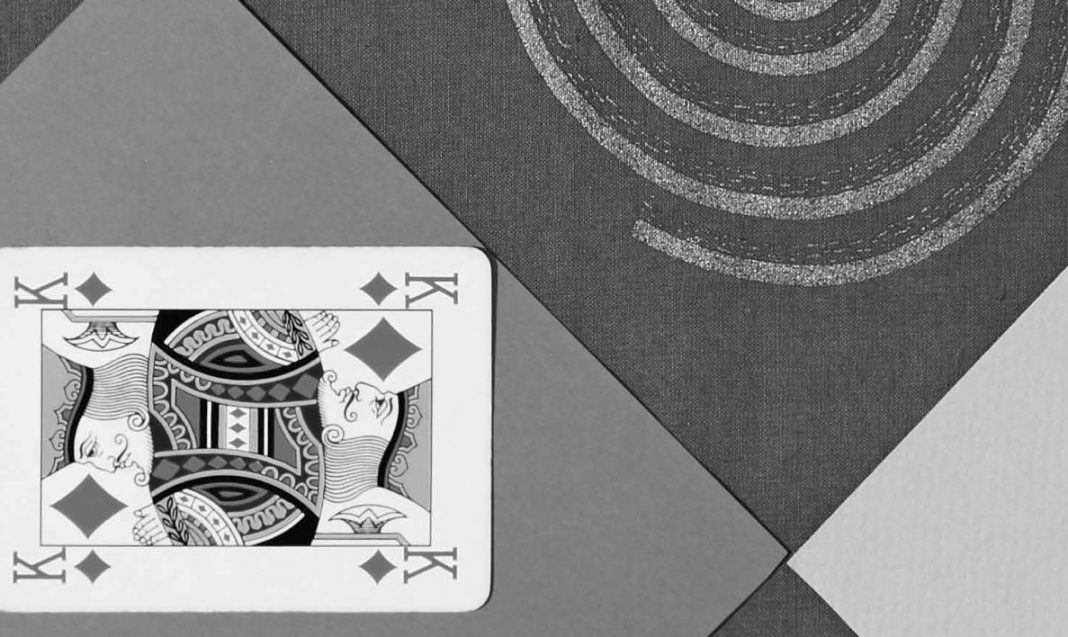 Un bottone diventa subito un occhio, una pezza di tessuto dalla forma tondeggiante è un volto. Molti personaggi affiorano da queste situazioni inscenate per gioco e per gusto dell’accostamento ardito. Una matita, simile a un signore smilzo e allampanato, e il re di quadri, convenzionale e autorevole dall’alto del suo status, si incontrano con i numeri e la carta da parati a grandi fiori. Il mondo è lo stesso impossibile e splendido guazzabuglio dove si è trovata a districarsi, divertendosi all’inverosimile, Alice di Lewis Carroll.