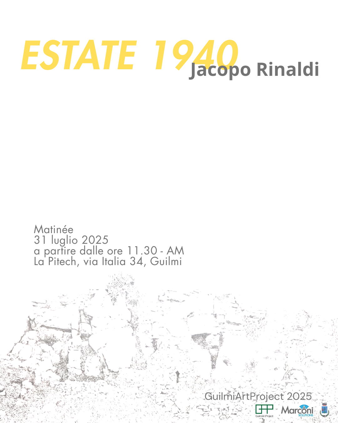 Giovedì 31 luglio 2025, aprirà un insolito matinée dedicato alla presentazione della recente opera di Jacopo Rinaldi intitolata Estate 1940 realizzata a cavallo tra il 2024 e il 2025, nella tappa a GuilmiArtProject di Rural Visions. Rural Visions è il progetto appena conclusosi a cura di Marco Trulli per Cantieri d’Arte (VT), articolato in quattro residenze a partire dalla Selva del Lamone nella regione Lazio.