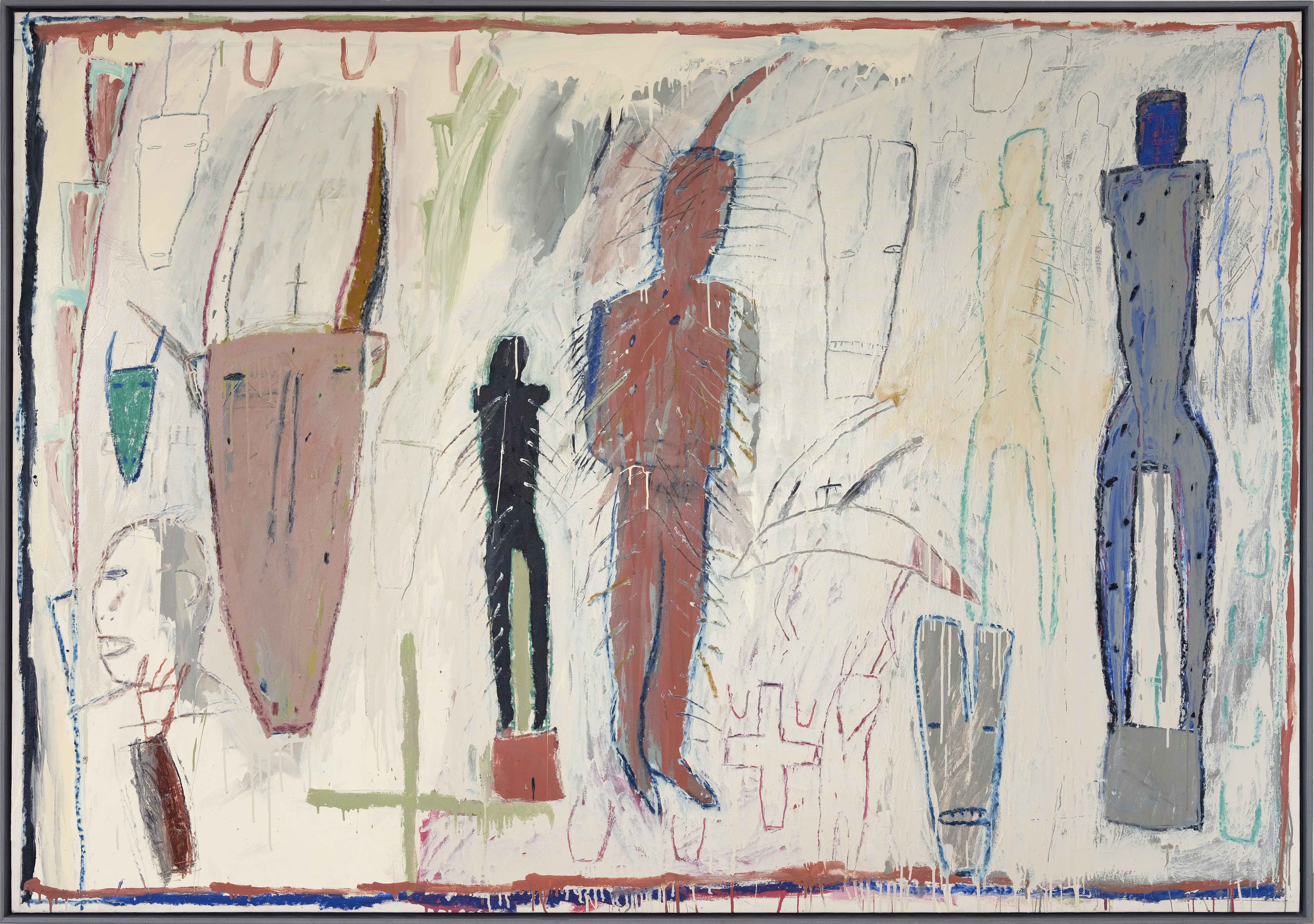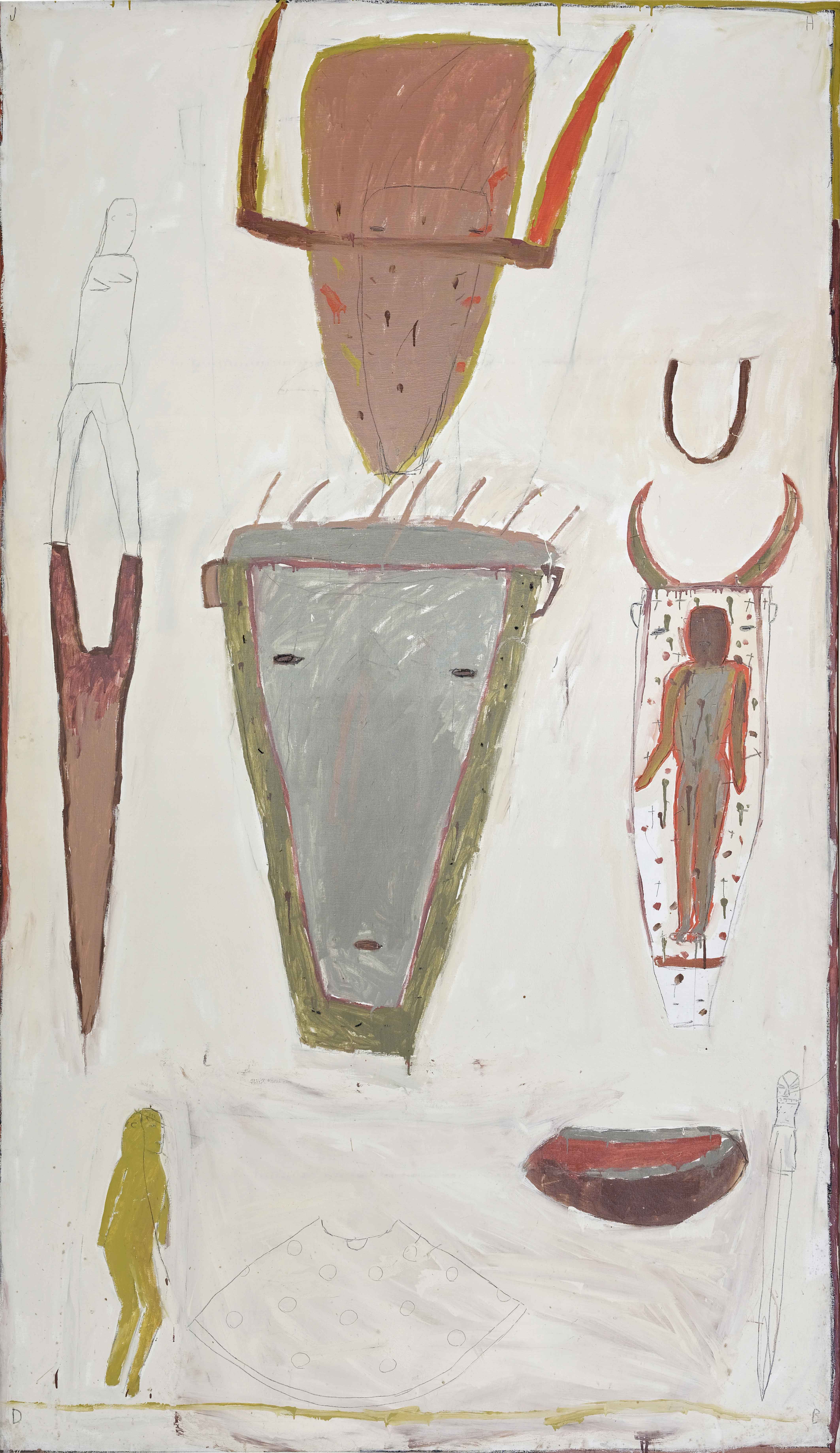 Brown nei sei anni che vanno dal 1981 al 1986 combina elementi primitivi derivanti dai contesti rituali delle popolazioni indigene dell’Africa e dell’America, con astrazioni informali e gesti istintivi e dirompenti. La sua poetica si concentra sulla convivenza tra tradizione modernista e reminiscenze arcaiche di mondi lontani e misteriosi. Le sue figure stilizzate richiamano l’esperienza dell’Art Brut francese e tendono allo sfaldamento definitivo evocando maschere, riti, celebrazioni mistiche ed enigmi impossibili da risolvere. Attraverso questa chiave di lettura si deve intendere l’ossimoro del titolo della mostra, Prehistoric New York: la città emblema della modernità, storicamente proiettata verso il futuro e verso la ricerca di una verticalità sempre più accentuata ma che riscopre simboli, immagini e archetipi dimenticati.