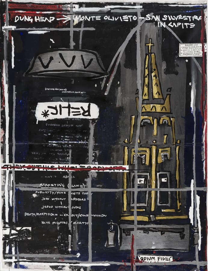 Partendo dal dato autobiografico, l’artista realizza opere dalla complessa struttura simbolica, in cui i grafici convivono con le immagini, e il colore, grondante e polimaterico, svela le contraddizioni di una creatività pressoché incontenibile.