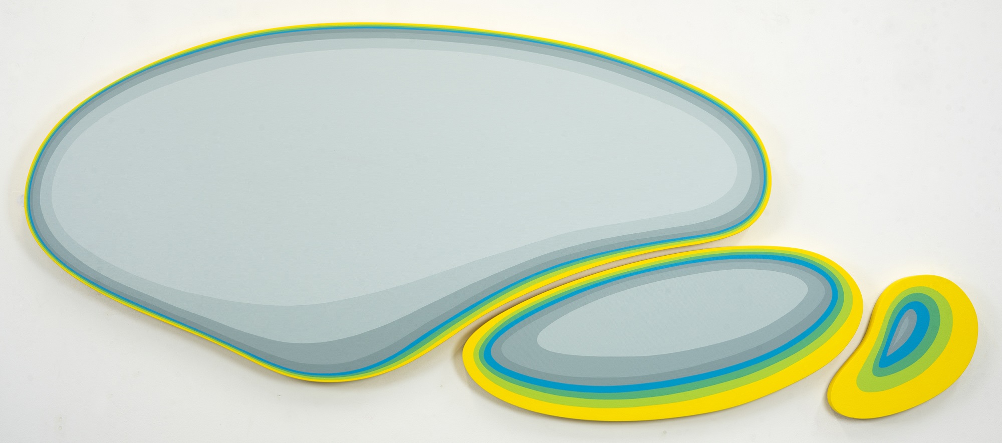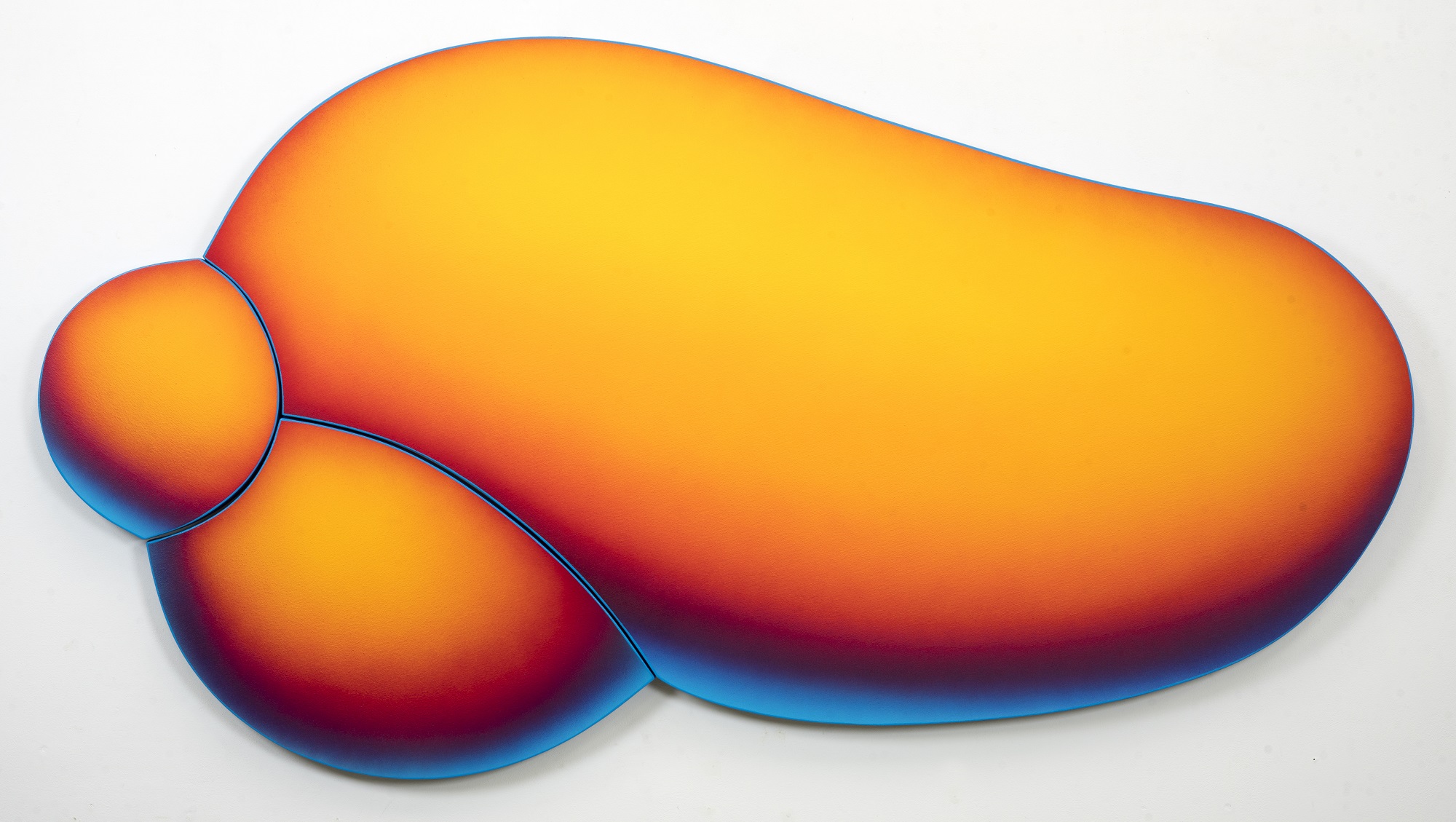 Tutte le opere esposte sono state realizzate appositamente per la mostra. Tra queste, il pubblico potrà apprezzare sia un’accurata selezione di opere pittoriche tra le quali segnaliamo “Atomic Bubble Blue”, icona della mostra e da molti appassionati già considerata come un’importante svolta per lo stile di Kaláb, sia la grande scultura “Honour to Brancusi”, in perfetto equilibrio tra l’eleganza delle forme e il linguaggio pop. Nelle altre composizioni pittoriche esposte si potranno apprezzare, ad un livello ancora forse inedito per controllo e maturità, le caratteristiche tipiche del suo stile, ovvero il dinamismo di forme che ricordano cellule, gocce o pianeti, l’ipnotica fluidità cromatica e le sapienti sfumature capaci di creare un’illusione percettiva di tridimensionalità.