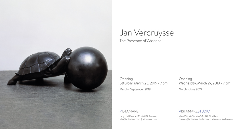 In mostra da Vistamarestudio a Milano dal 27 marzo opere che ripercorrono la ricerca dell’artista dagli anni ’80 al 2002, in grado di offrire, attraverso una selezione di lavori che dialogano con gli spazi della galleria, una visione esatta dell’arte concepita da Vercruysse. Opera centrale è La Sfera presentata per la prima volta alla Biennale di Venezia del 1993, una grande scultura in bronzo che rappresenta una tartaruga che cerca di arrampicarsi su una sfera: equilibrio perfetto tra convinzione concettuale e preoccupazione estetica. Nel silenzio formale dell’oggetto stesso i Tombeaux e l’opera fotografica Zonder titel (zelfportretten) XVI 1981, che svela il suo uso della fotografia come strumento di rappresentazione indipendente dalla poetica intrinseca del medium, confessano la volontà dell’artista di spogliare le sue opere di qualsiasi significato convenzionale, utilizzando gli elementi per quello che sono, cornici vuote che danno valore all’assenza e alla totalità dell’arte, intesa come infinita potenzialità.