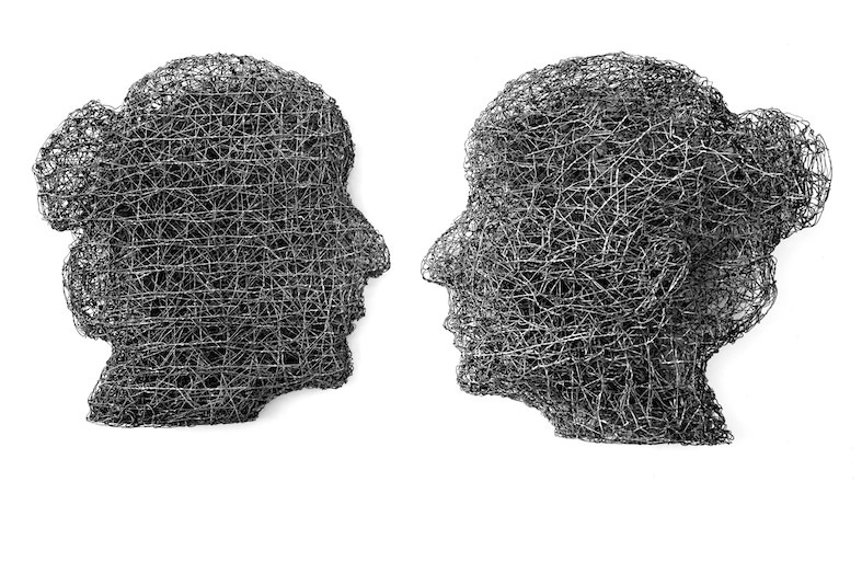 La somiglianza emerge prepotentemente anche nella recente serie di sculture in metallo con i due profili del padre e dell’artista stessa a confrontarsi come in uno specchio.