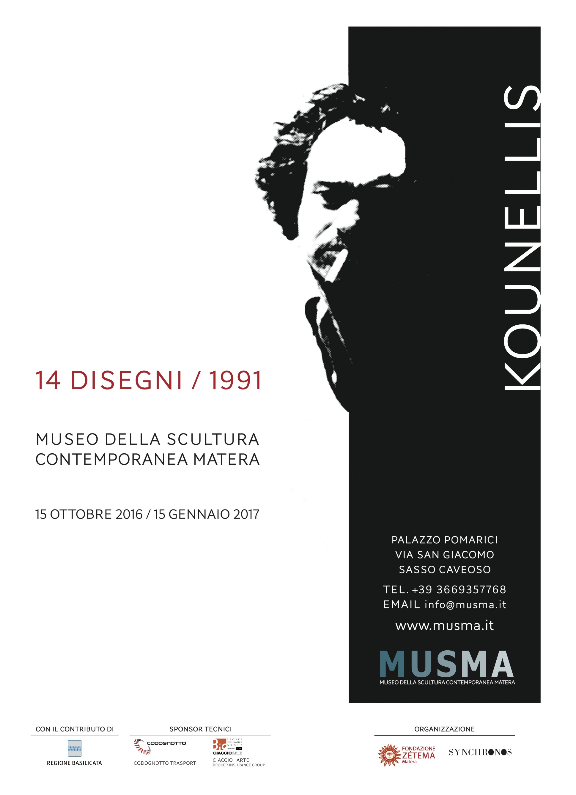 kounellis / 14 disegni / 1991 costituisce un'anticipazione della prima di una serie di esposizioni temporanee ideate dal nuovo direttore del Museo della Scultura di Matera, dedicate alle grandi collezioni private d'arte contemporanea italiana, che il MUSMA ospiterà a partire dalla metà del 2017. La grande installazione di Kounellis, nata dai 14 disegni esposti, sarà infatti uno dei pezzi più importanti della mostra dedicata alla collezione di Luisa Laureati Briganti, instancabile e storica fondatrice nel 1965 della Galleria dell'Oca di Roma, compagna di vita e d'idee di Giuliano Briganti.