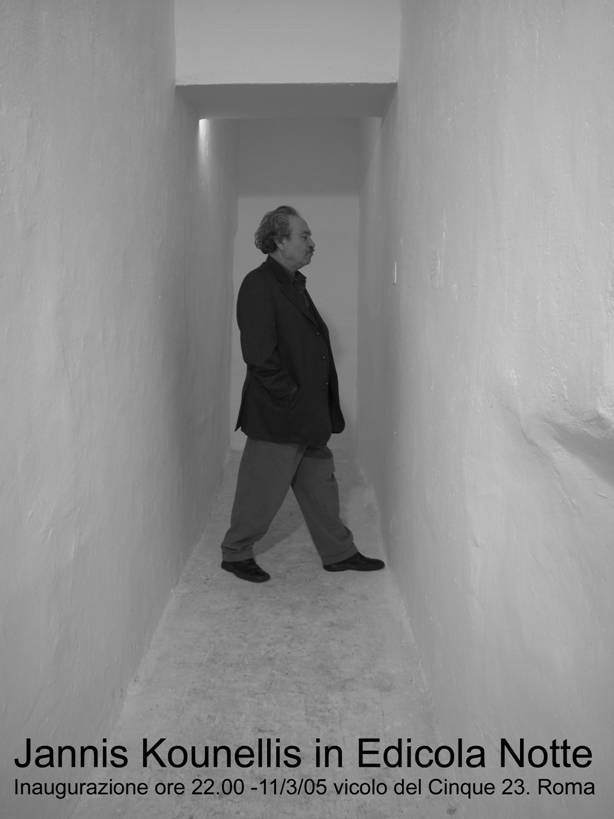Dopo oltre un anno di preparazione, è stato finalmente realizzato un progetto appositamente per lo spazio di Edicola Notte. Questa è la sfida che ha emozionato molto Jannis Kounellis per la realizzazione di una grande opera in un minuscolo