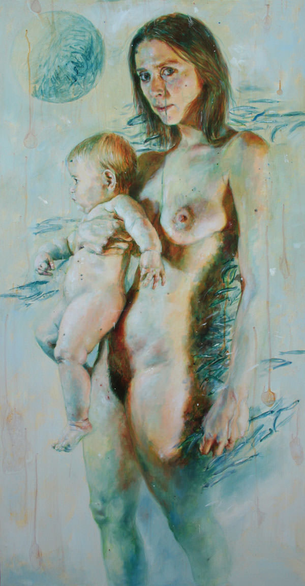 La sua arte racconta di un sentire al tempo stesso estatico e carnale, reso ancor più incisivo e toccante dalla perfezione tecnica che contraddistingue l’artista. Una dimensione liquida e indefinita, in cui bambini e donne si stagliano su sfondi trasparenti e gocciolanti, una lucida e lacerante qualità espressiva, un’indefinibile purezza che si veste di pittura, un costante gioco di spiazzamenti, di scambi di ruolo tra l’artista che dipinge e il soggetto raffigurato.