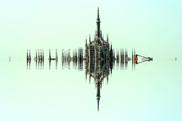 Ad alcuni lavori della nota serie dedicata alla capitale, presentata nella mostra “Roma guarda Roma” nel dicembre 2005, (con dieci gigantografie 5mx3m nelle più belle piazze della città) e ad altri di quella su New York (allestita al Centro Arti Visive Pescheria di Pesaro in occasione del decennio del centro nel 2006), in cui i grattacieli scomposti in tante figure geometriche veicolano messaggi assai lontani dal frenetico caos della Grande Mela, si aggiunge la nuova ed inedita produzione su Parigi, in cui “La Défense” viene trasformata in una sferica giostra per bambini, la Tour Eiffel osservata dalle Tuileries ribadisce il suo ruolo di monumento simbolo e riconsegna la città all’’eternità. Come omaggio alla città che la ospita, l’artista ha realizzato un’immagine “fantastica” del duomo di Milano. Tesa, dilatata, la cattedrale sembra galleggiare in un’atmosfera rarefatta, senza traffico né smog.