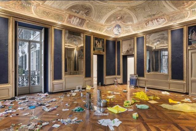 Nelle stanze di Piazza Carignano Dodge ha creato un’installazione composta da detriti sparsi raccolti in tutto