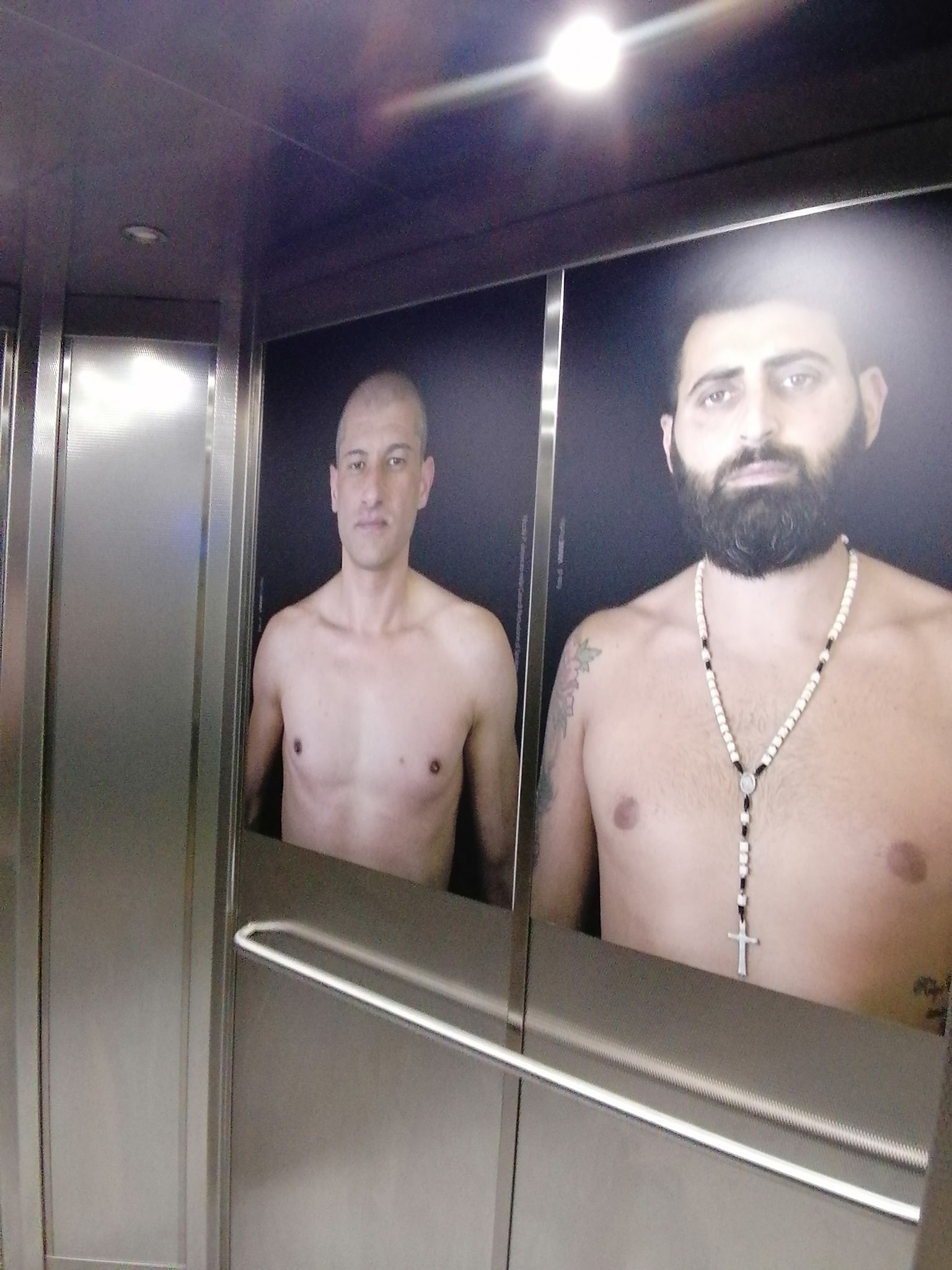 Grandi stampe fotografiche e alcuni video, collocati lungo il percorso etto-metrico dal parcheggio della Posterna fino all’ultima uscita alla sommità del colle Sant’Elia, presso la Rocca Albornoziana, già residenza pontificia, carcere fino al 1982, oggi sede del Museo Nazionale del Ducato. I 600 metri del tapis roulant che percorrono la galleria diventano una promenade multimediale: l'utente del percorso meccanizzato inaspettatamente, incontra gli sguardi negati e incrocia le emozioni compresse dei reclusi a Maiano.