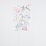 Nelle opere su velo compaiono, mescolate con fili colorati, immagini provenienti da antichi graffiti e da quegli scarabocchi tipici dei block-notes, utilizzati nei negozi per provare le penne nuove. Il ricamo decontestualizza la semplicità e la spontaneità dei messaggi originali collocandoli sulla superficie morbida del tulle. I segni a cui si ispirano, “incisi” su pietra o su carta, si trasformano in forme tridimensionali che fluttuano sulle pareti dello spazio espositivo. Si realizza visivamente un processo di “strappo” di uno strato di architettura e di tempo, i quali vengono introdotti nel nostro presente, in tempo reale, e consegnati a quell’eternità a cui fin dal principio sembrano tendere.