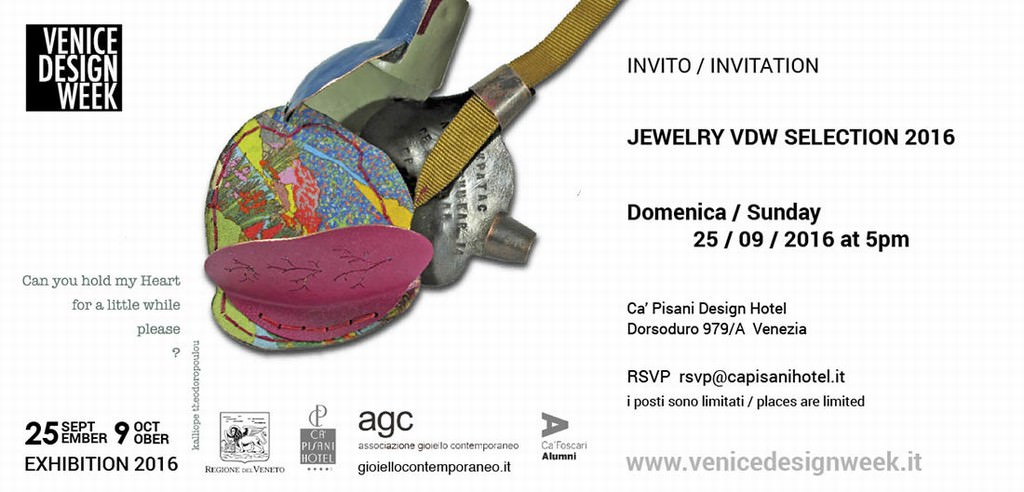 Il gioiello avrà un posto d’onore nella programmazione della Venice Design Week. Alla sua terza edizione, il concorso “Jewelry Venice Design Week Selection” vede la partecipazione di molti designer e artisti che si cimenteranno nell’interpretare un soggetto molto particolare: “Il Cuore come centro della vita, come simbolo delle emozioni, come suono, come organo che condividiamo con molti esseri viventi” …