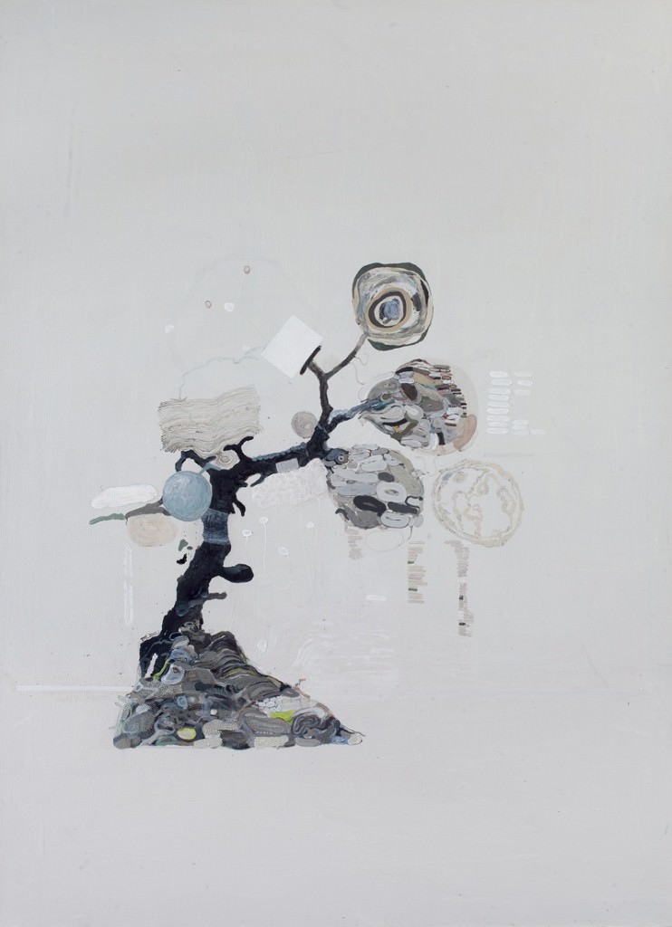 Le sue tele, pervase da una profonda enigmaticità e spesso irriverenti, assurde, inducono inevitabilmente lo spettatore alla ricerca di un senso non immediato, nascosto, come rivelano alcune delle opere in mostra – tutte realizzate a partire dal 2006 – tra cui Holy Mother A Hostage (2011), Other Worlds (2011), Plastic Brains (2011), True World Art (2011), Brain Juice (2010), Ellen’s Book (2010) e Plastic Landscape, Plastic Park (2010).