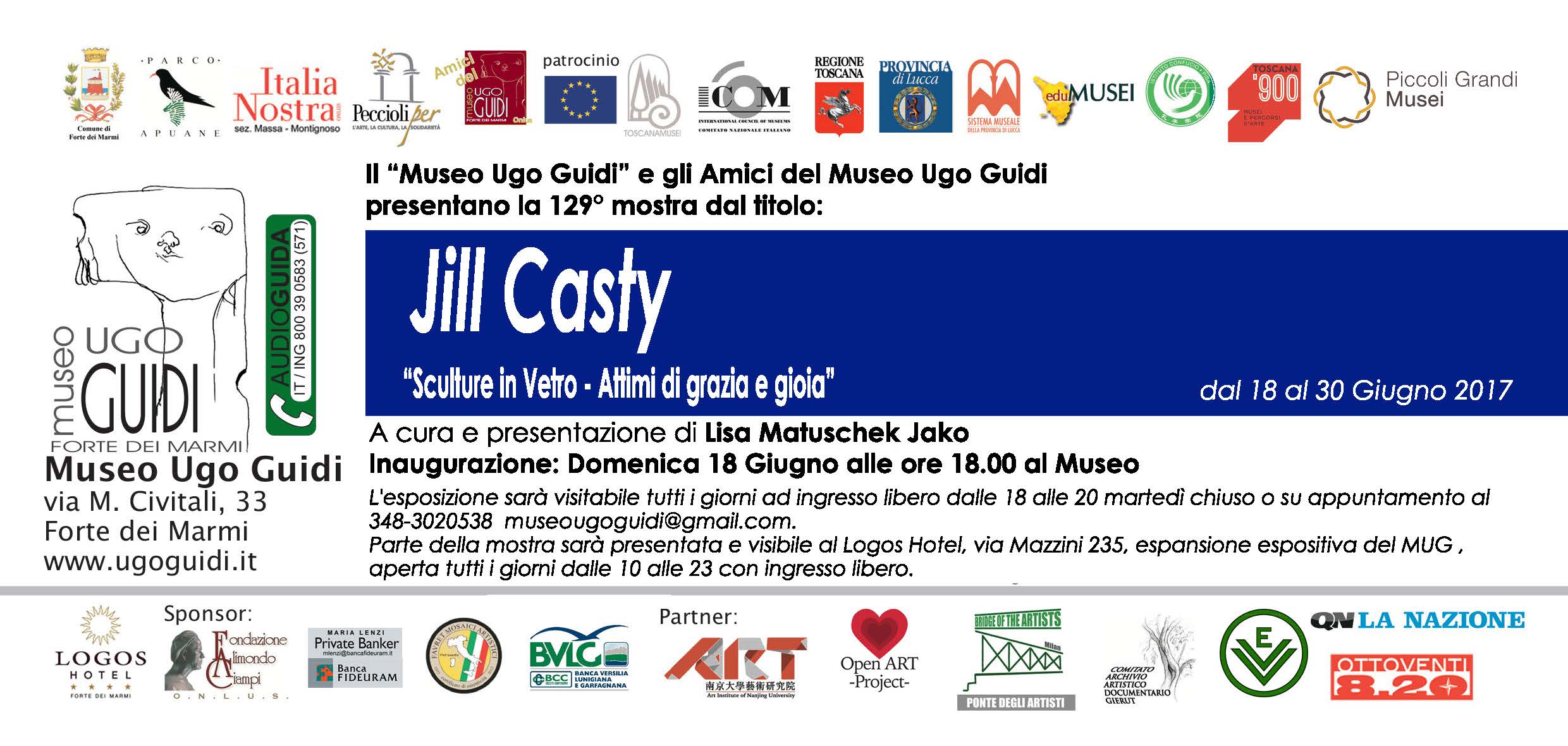 Il Museo Ugo Guidi di Forte dei Marmi ospita dal 18 al 30 Giugno 2017 la 129° mostra dal titolo “Sculture in vetro – Attimi di grazia e gioia” dell’artista americana Jill Casty, che sarà inaugurata Domenica 18 Giugno alle ore 18:00 al MUG con la presentazione della curatrice Lisa Matuschek Jako.