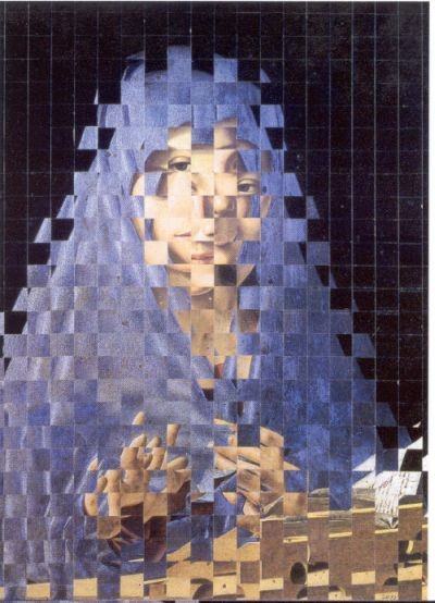Kolář ha ritagliato e ricomposto innumerevoli immagini nella sua opera, fotografie di persone, di capolavori d’arte antica e moderna, foto pubblicitarie o d’architettura, e inoltre testi a stampa dalle diverse grafie, compresi gli spartiti musicali. Nell’approfondire le possibilità linguistiche del collage (la prima esposizione, al Mozarteum di Praga, è del 1937) Kolář ha sperimentato anche la terza dimensione, sia inglobando oggetti nell’opera, sia creando teatrini a rilievo. Più spesso opera nella ricomposizione delle immagini accuratamente ritagliate, seguendo le varie tecniche bidimensionali - confrontage, rapportage, rollage, cuborollage et alia - da lui stesso definite nel Dictionnaire des Methodes del 1991. Se talora, come in Velo d’amore, opera simbolo della mostra, il capolavoro prescelto è protagonista assoluto della tavola, in altre opere invece vediamo il dipinto prendere risalto grazie alla sovrapposizione al centro dei suoi noti sfondi a minuti ritagli giustapposti di carta stampata che dona all’insieme l’effetto di un delicato ricamo. Così in virtù dell’accostamento a questi grafismi e a dispetto del taglio subito, l’opera d’arte antica prende un risalto del tutto nuovo.