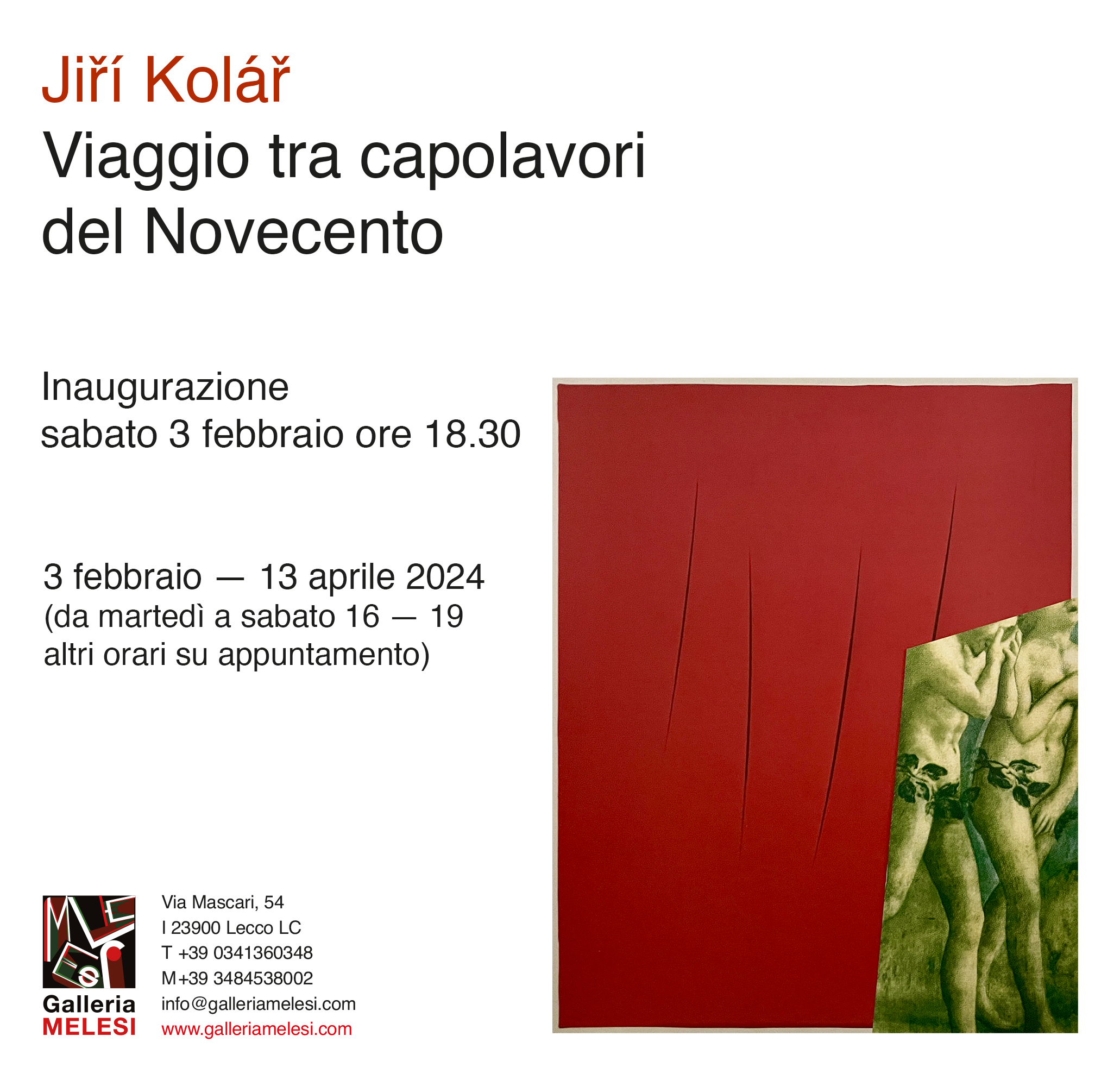 La mostra di Jiri Kolar, industrioso inventore di oltre 100 tecniche del collage, omaggia diversi grandi maestri del Novecento da lui rivisitati con accostamenti riusciti e grande rispetto.
