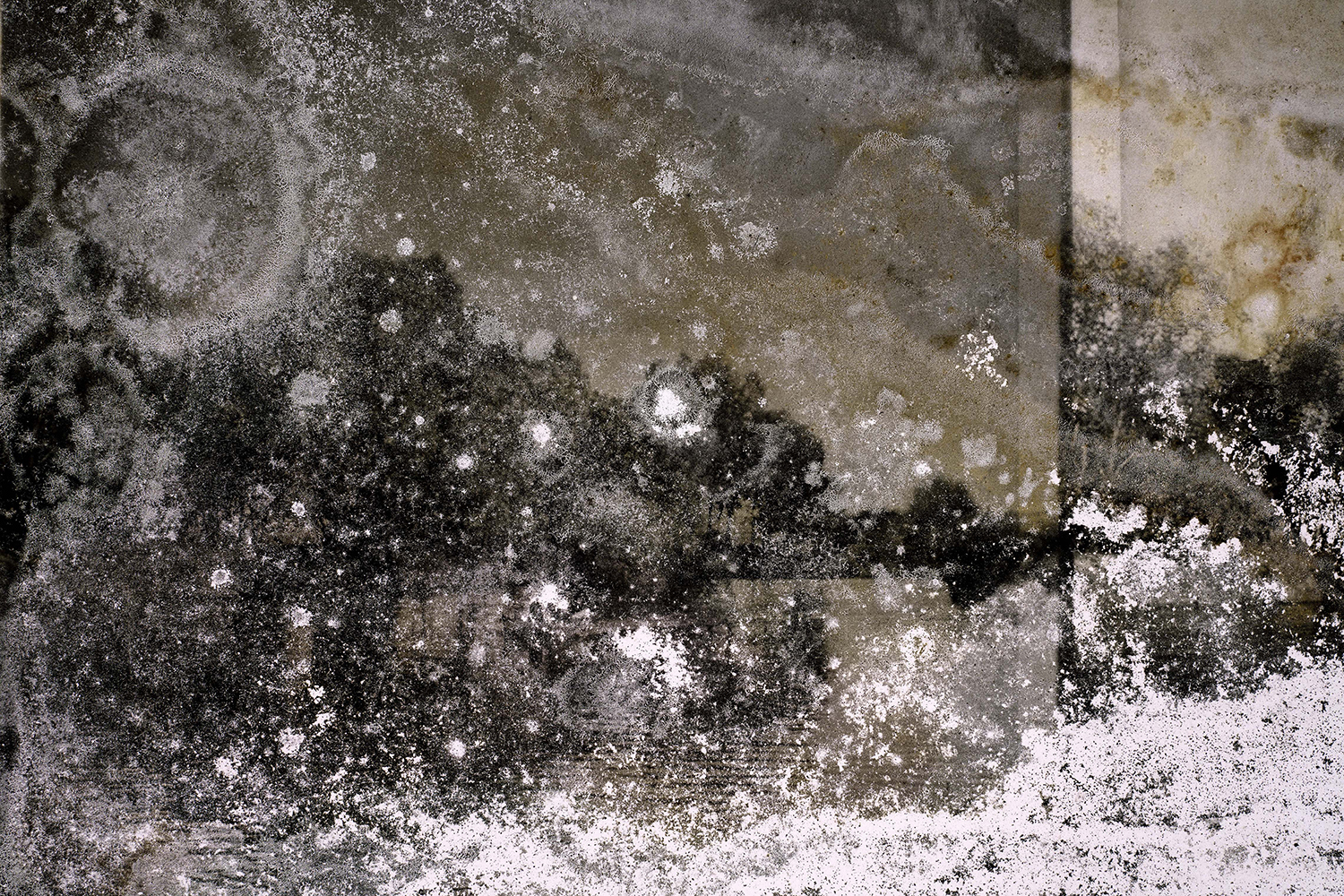 I materiali “amnesici” su cui ha lavorato l’artista, se da un lato perdono memoria, dall’altro acquisiscono nuova fisionomia attraverso i tanti segni che il passare del tempo vi ha lasciato: graffi, lacune e, talvolta, batteri e funghi proliferati grazie all’ambiente chimicamente accogliente dell’emulsione di gelatina ai sali d’argento. Nuovi paesaggi che si sommano al soggetto originario della fotografia, visibile in controluce. Attraverso un procedimento di tipo surrealista che consiste nel prelievo/appropriazione di elementi già dati, in questo caso un frammento della lastra, Fontcuberta compie il suo atto creativo, restituendo immagini quasi astratte eppure reali; paesaggi poco plausibili eppure assolutamente non manipolati, presentati attraverso il display delle light box.