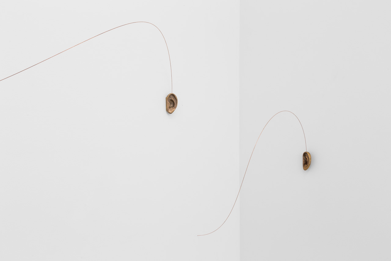 Fulcro dell’indagine dell’artista è, infatti, il nostro rapporto con il mondo che abitiamo, in quanto individui ontologicamente interconnessi con la sua dimensione originaria. Le opere richiamano forme naturali primordiali cristallizzate nei materiali alchemicamente simbolici dell’oro e dell’argento, fusi e plasmati dall’artista stessa, che echeggiano silenziosamente eventi celesti e terrestri non collocabili nel tempo. I lavori si piegano e si modellano sotto il loro lieve peso e reagiscono vibrando alle condizioni specifiche dell’ambiente circostante, ricordando il paesaggio frastagliato di un cielo saettante o scenari lunari in cui la presenza dell’uomo è appena percettibile.