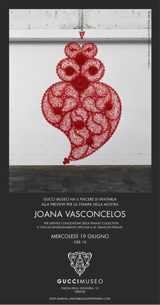 Gucci Museo è lieto di annunciare Joana Vasconcelos, quarta esposizione d’arte contemporanea realizzata con opere provenienti dalla Pinault Collection e grazie a M. François Pinault. La mostra è curata da Francesca Amfitheatrof.