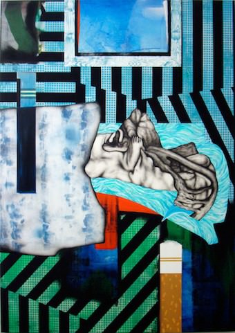 The series of paintings instead realizes a “mimesis” of the collage through the use of abstract shapes that disassemble in color cross-hatching, which Kleckner invades with figurative inserts excerpted from a scientific and biological imagination, where a surreal dialogue is hatched between the lightness of art and the concreteness of scientific speculation. Therefore, he is able to activate an intriguing cognitive research on reality, where the reference is dilated and magnified, comparable to a screech to grab attention.