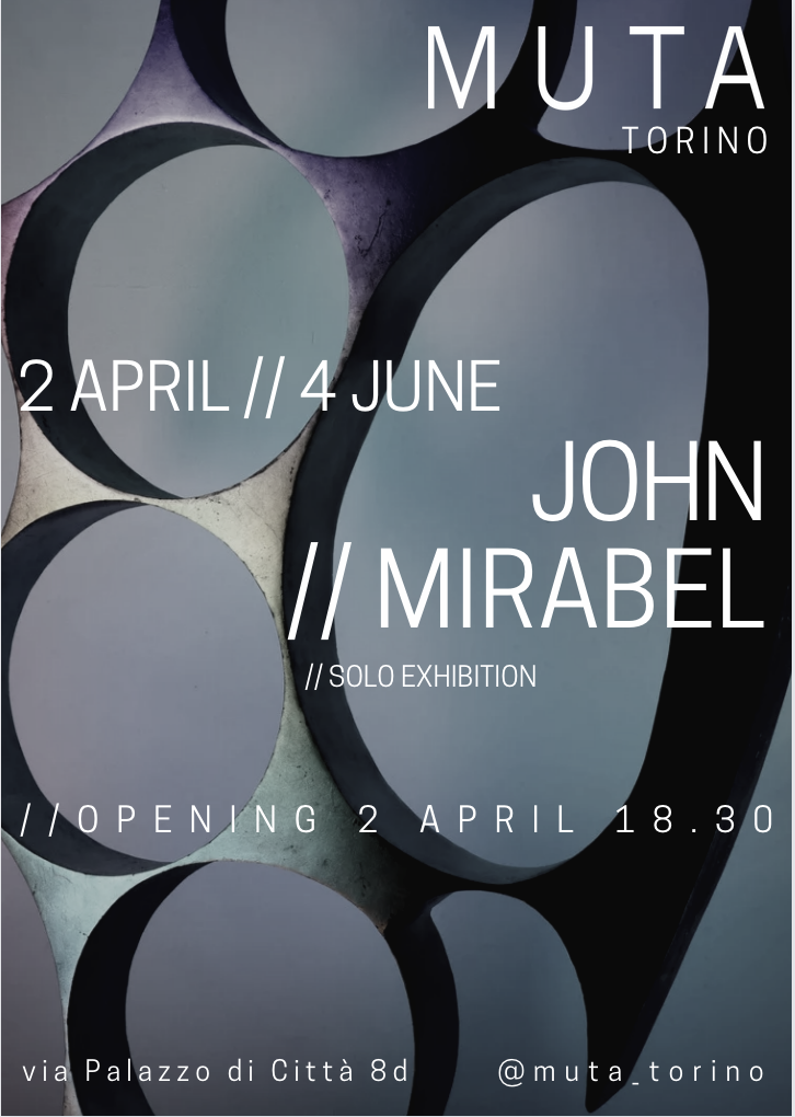 Per la prima volta a Torino mostra personale dell’artista franco americano John Mirabel (1988) presso la nuova sede di Muta Torino in via Palazzo di Città 8d, l’artista esporrà due istallazioni oggettuali e un’istallazione sonora.