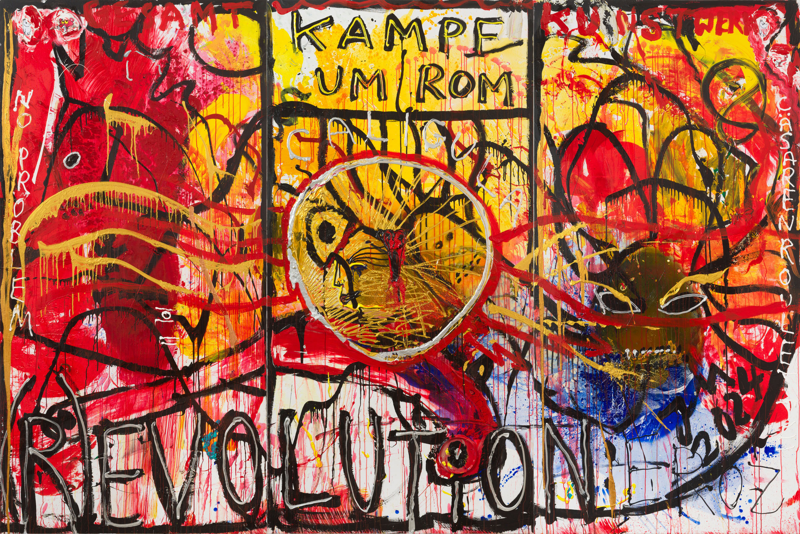 Tim Van Laere Gallery presenta la sesta mostra personale di Jonathan Meese con la galleria, nonché la sua prima mostra a Roma. L’artista si ispira alle potenti dinastie imperiali dell’Antica Roma esponendo nuovi dipinti, disegni, sculture, un’installazione video e manifesti.