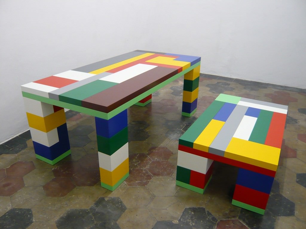 Nella concezione di quella che è una via di mezzo tra un'opera, un oggetto di design e un'edizione d'artista non convenzionale, Jonathan Monk ha costruito un minuscolo modello di tavolo composto da mattoncini lego, lo ha fotografato e ha deciso quali sarebbero state le dimensioni finali delle due versioni del tavolo da realizzare.