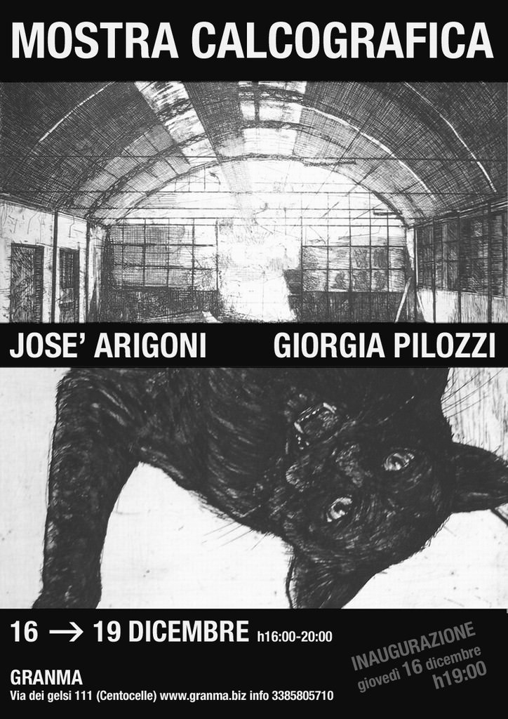 Inaugura al Granma (Centocelle, Roma) la mostra calcografica di Josè Arigoni e Giorgia Pilozzi. Saranno esposte acqueforti, acquetinte e punte secche dei due giovani artisti.