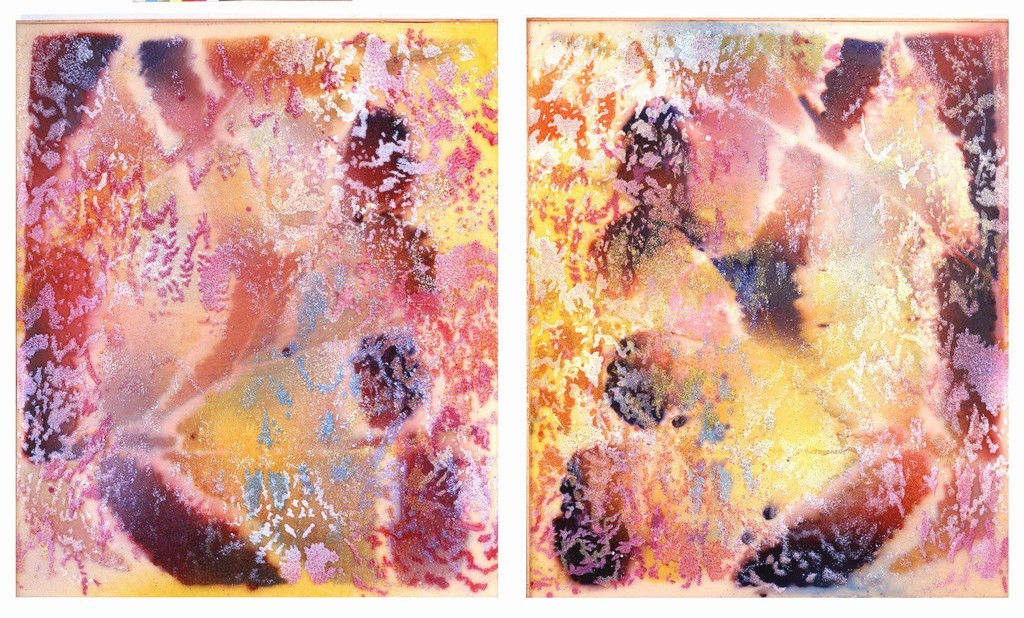 La mostra si presenta al pubblico come un percorso, un itinerario che si apre nella sala principale della galleria con quattro grandi quadri (un dittico di 180x300cm e tre lavori di 180x150cm) dai colori molto accesi, che evocano l’intensità dell’amore mistico. Nella sala intermedia sono esposti altri quattro dipinti di medie dimensioni in cui la luminosità della cera usata come supporto è dominante rispetto alla violenza del colore che resta sullo sfondo come traccia e memoria dell’amore, cristallizzazione e residuo dell’ondata passionale. Nella terza saletta, altri sei quadri più piccoli in cui predominano colori scuri come il nero, il viola, il blu, alludono infine alle tenebre, all’abbandono e alla comunione mistica, chiudendo anche concettualmente il percorso della mostra.