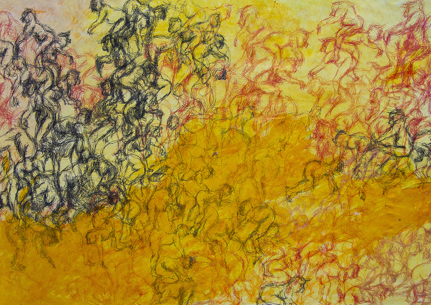 Due grandi bastoni coperti di sculture di piccoli maiali in cera danno forma alle opere Abracadabra di Sandra Tomboloni. Viene subito da pensare alle aste decorate che reggono i rotoli della Toràh, libro sacro per eccellenza dell’ebraismo. La parola Toràh significa “insegnamento”, e deriva da una radice ebraica che indica anche “colpire” o “andare a segno”. Nella cultura israelita, il bastone è un simbolo di autorità, utilizzato dal pastore come strumento di correzione e guida per il suo gregge. Mentre il gruppo di maiali si impossessa dei bastoni, come a prendere in mano il comando, cercando la vera essenza di quegli insegnamenti, la parte bidimensionale di questa parodia del testo sacro, che dovrebbe essere contenuta nel rotolo, si snoda invece in una serie di disegni che sfuggono alla sequenza e alla forma arrotolata per trovare ciascuno la propria dimensione. Lo stesso titolo Abracadabra ci riporta al campo del mistero e della magia. Abracadabra è un vocabolo in uso nella magia mistica antica ed è considerata la parola universalmente più adottata fra quelle pronunciate senza traduzione nelle singole lingue. Questa parola era probabilmente utilizzata da popoli di lingua aramaica o araba, prevalentemente come incantesimo per curare alcune malattie o per scacciare i demoni.