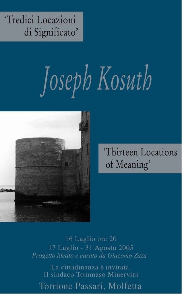 Un’altra importante tappa del programma espositivo del Torrione Passari di Molfetta è segnata, quest’anno, dall’intervento dell’artista americano Joseph Kosuth