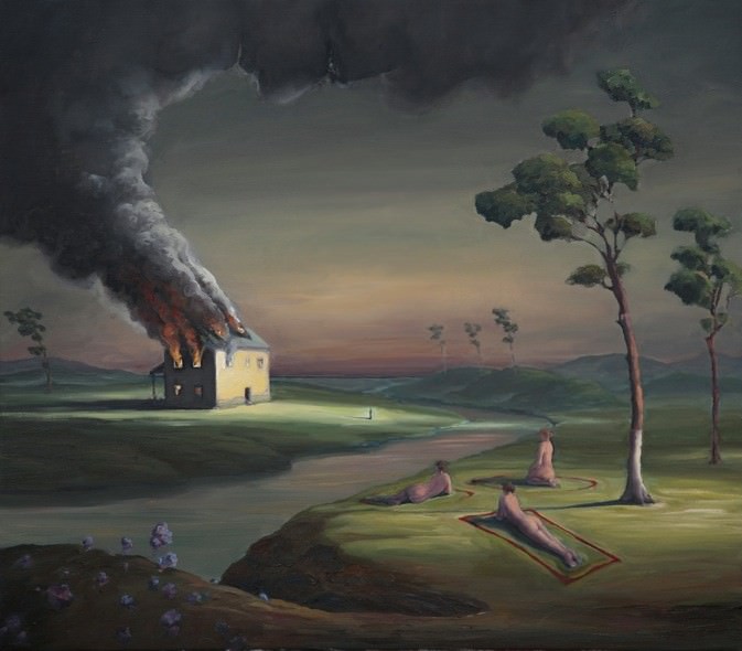 Sacha Drutskoy ha un approccio alla pittura diametralmente opposto a Ceci. Nei suoi oli su tela e su carta dipinge scenari surreali, che sintetizzano realtà oggettiva ed immaginario personale. La dimensione narrativa conferita ai paesaggi si sviluppa nei rimandi tra i vari gruppi di figure, poste tra loro in rapporti enigmatici: sta all’osservatore decifrarli e dare loro valore. La rappresentazione realistica unita all’oniricità delle situazioni conferiscono alle opere un senso di calma e di mistero, riproducendo quella tipica sensazione legata all’alchimia del sogno; colui che guarda i dipinti partecipa al mistero stesso attribuendogli la propria personalissima interpretazione.