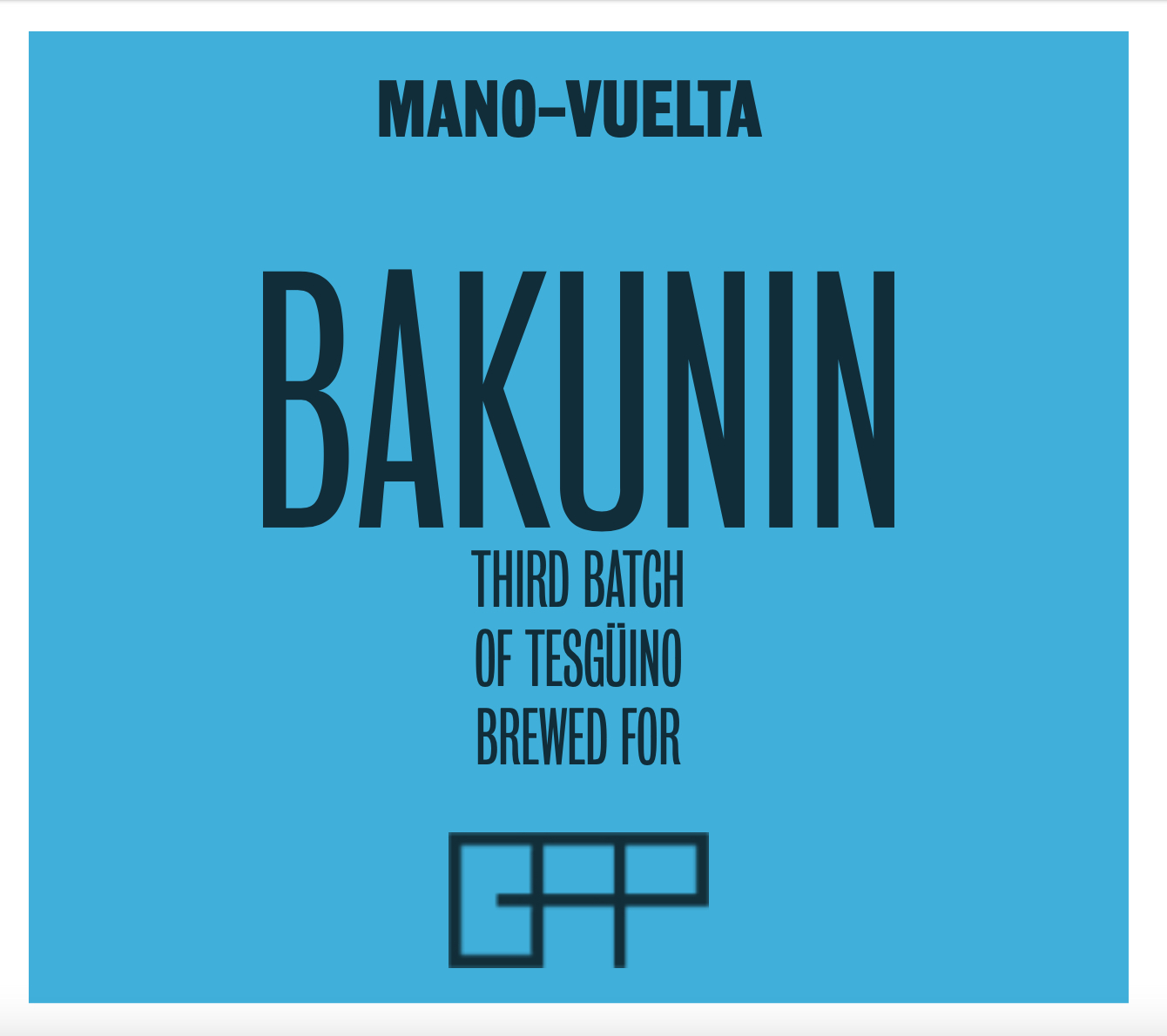 Realizzato per la prima volta in seguito a workshop con gli studenti del Skulpturinstitut di Vienna, presentato alla galleria Angewandte a ottobre 2021 (Mano-Vuelta - Prudhon, coproduzione Skulpturinstitut e MUME - nomadic Mexican Museum a cura di Oscar Cueto), Mano-Vuelta Bakunin ha come fine la produzione di una birra ricavata da mais biologico della varietà zapalote chico proveniente dall’istmo di Tehuantepec, in Messico. A Guilmi Filippo Racciatti impianterà il mais di una pannocchia messa sotto vuoto in occasione di Museum pieces, a 6000 year-old corn fossil, two agronomists and a geneticist presente alla Seconda Biennale di Yinchuan a cura di Marco Scotini (2018). In seguito alla raccolta, a Guilmi il mais sarà sottoposto al processo di fermentazione per ricavarne la bevanda poi consumata collettivamente e imbottigliata come Mano-Vuelta Bakunin, in onore dell’anarchico russo che soggiornò nel Regno di Napoli a partire dal 1865.