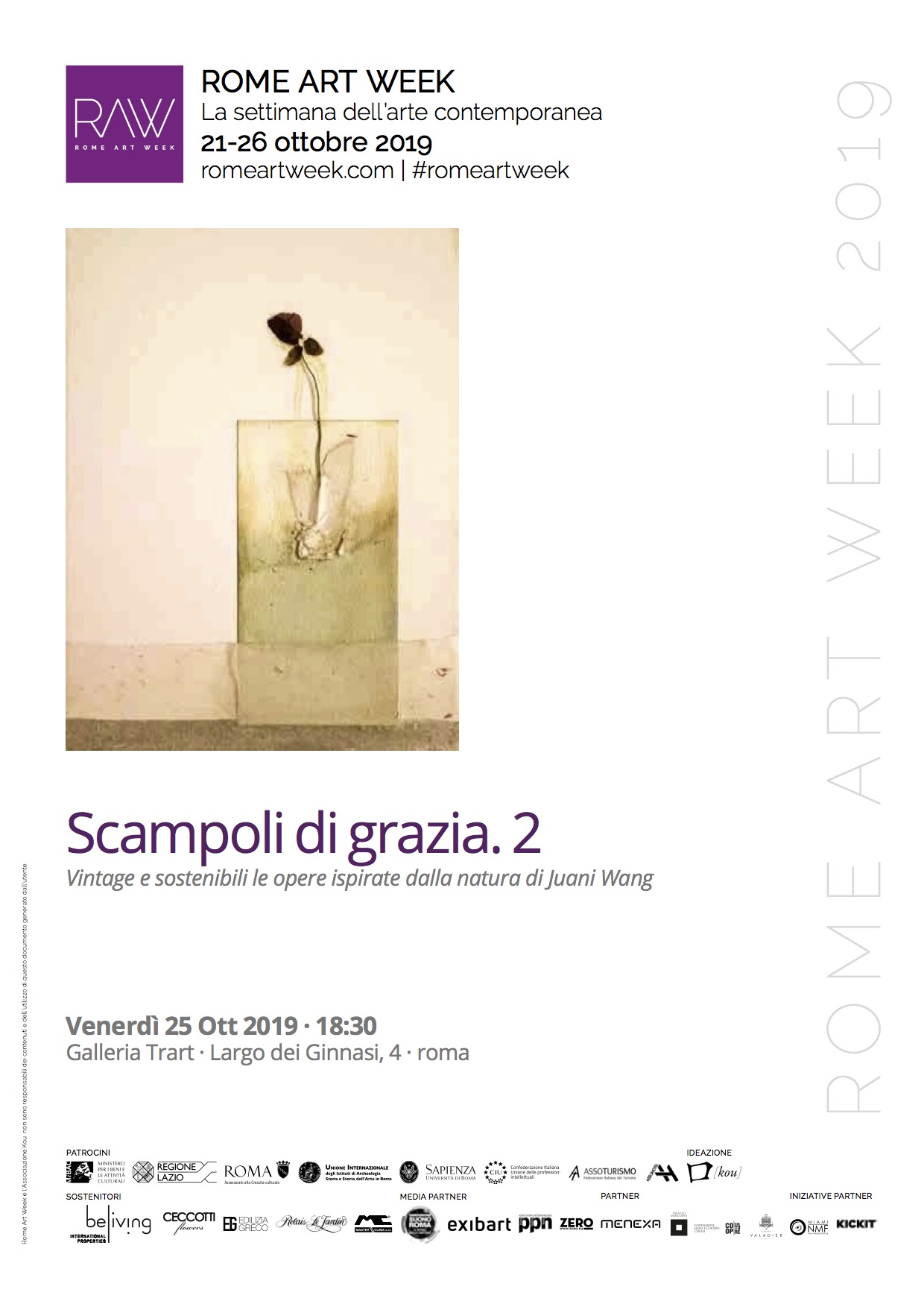 Selezionata per la Quarta edizione della Rome Art Week la mostra personale "Scampoli di Grazia /2" di Juanni Wang ospitata in un nuovo spazio d'arte situato dietro piazza Argentina in una storica piazza del cuore di Roma, inaugurerà venerdì 25 ottobre dalle ore 17.00