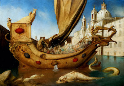 Giovanni Tommasi Ferroni, nato a Roma nel 1967. Richiamandosi al Realismo Magico, si è specializzato in pittura fantastica. È nato in una famiglia d'arte: il padre, è Riccardo Tommasi Ferroni, il nonno Leone Tommasi, lo zio Marcello Tommasi e la sorella Elena, pittrice, assieme alla quale ha compiuto i suoi esordi. Mostrò immediata inclinazione per il disegno, frequentando lo studio del padre fin dall'età di 11 anni e prendendo lezioni dallo zio Marcello d'estate, nello studio della famiglia di Pietrasanta. Le prime opere pittoriche risalgono a quando aveva 16 anni, ma la sua carriera di pittore iniziò dopo la fine del liceo classico, nel 1986, quando iniziò a lavorare presso lo studio paterno, studiando contemporaneamente Letteratura e Storia dell'Arte all'Università "La Sapienza" d Roma. Numerosissime mostre in Italia e molte anche negli U.S.A., Cina, Centroamerica, in Europa in quanto molto considerato. Docente sia a Roma che a Macerata ha sposato la figlia del grande Alessandro Kokocinski, Maya, raffinata pittrice anche lei presente in mostra.