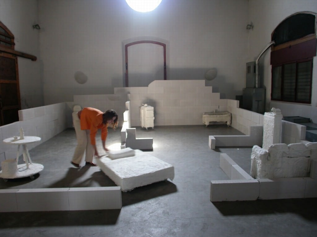 Gli spettatori sono invitati a interagire al riposizionamento degli elementi mobili e dei mattoni che costituiscono le pareti dell’appartamento.