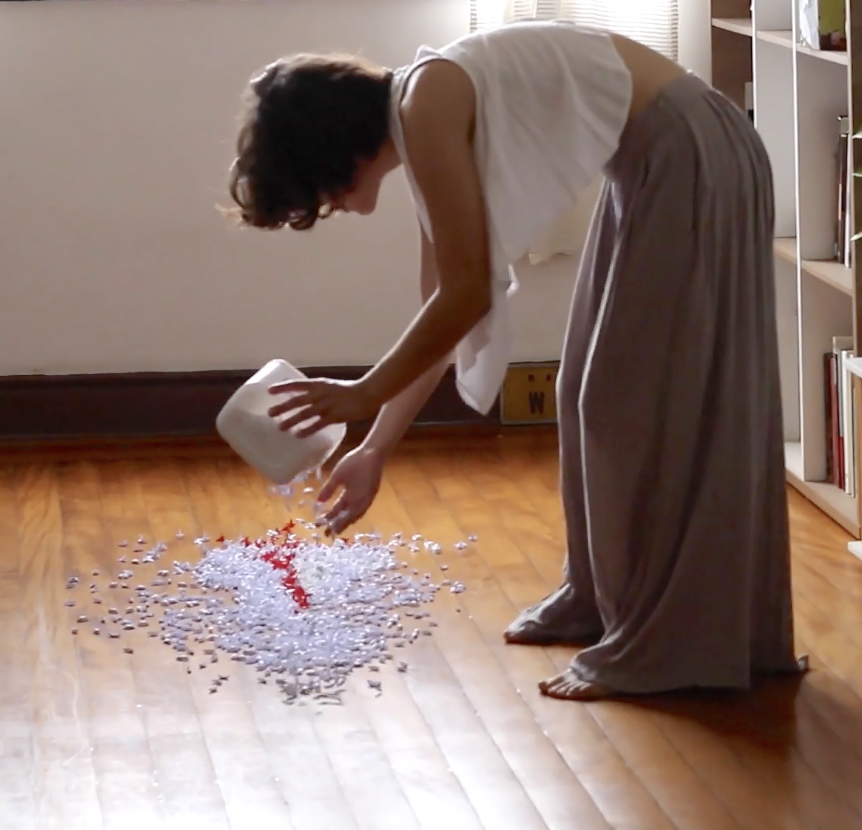 Il suono del battito, il corpo che ascolta, come una base di percussione sulla quale poi si compongono gli altri suoni, i grafismi, il gesto pittorico, legato ad un’alfabeto sonoro e fisico, uno spartito fatto di domande sull’essere veri o falsi nel proprio creare, il corpo molteplice.