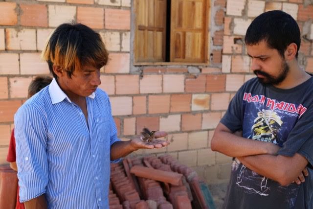 Each of these sources conceals countless other authors, other narrators. Each of these narratives is a mosaic of lifted fragments and impressions. An impression as the citation of an experience. The two projections I am showing are from a trip I made to the Maxacali people in November of last year in Brazil, with a group of linguists and anthropologists who were studying their nascent sign language. I filmed the interaction between the linguists and the signers, among other things, other moments, and it is some of these other moments that I will be showing here.
