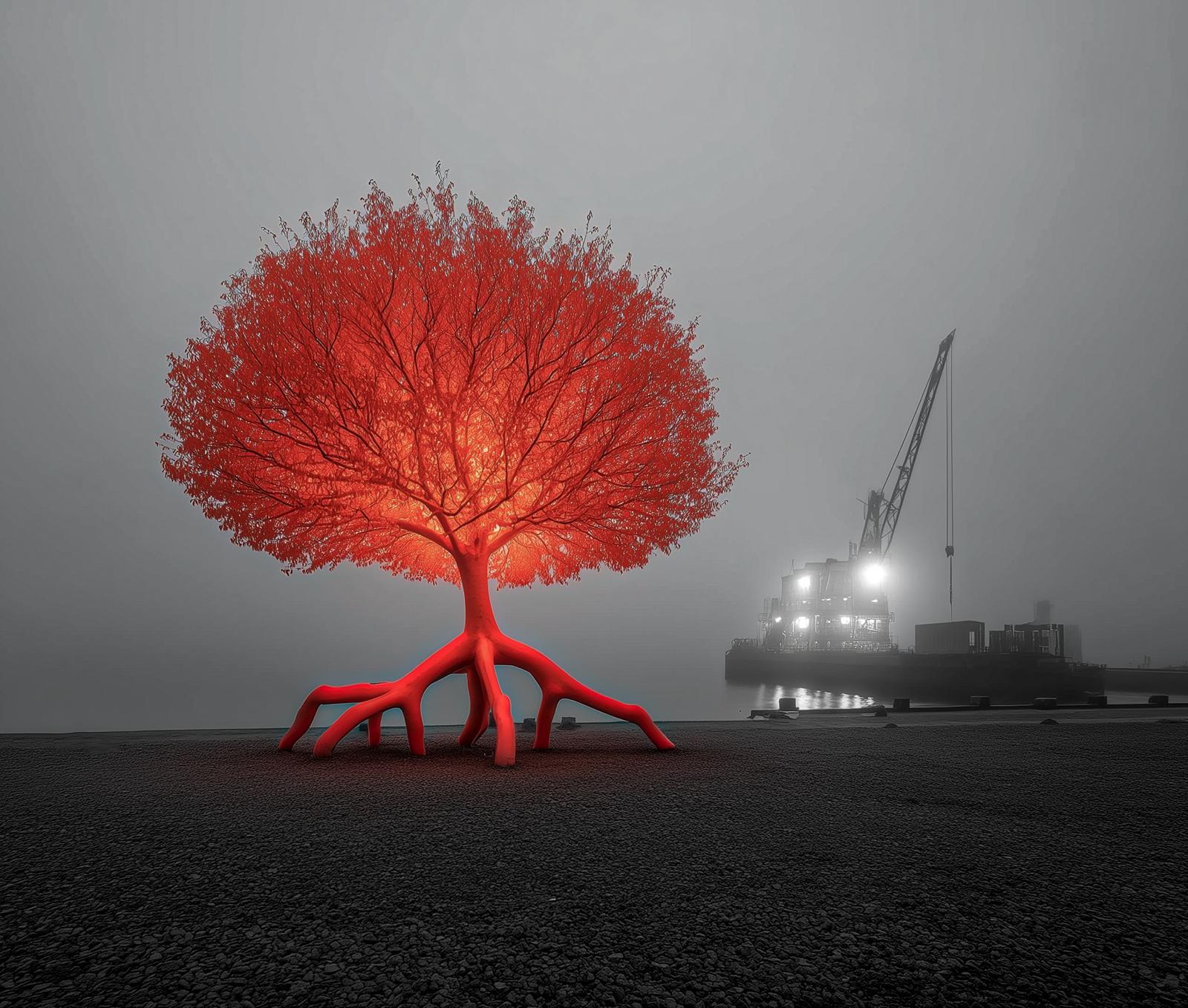 Le opere fotografiche, generate con l’ausilio dell’Intelligenza Artificiale, trasformano la tecnologia in uno strumento di indagine poetica e concettuale. La mostra presenta due approcci distinti, da un lato scenari che sembrano realistici ma rivelano una dimensione decisamente surreale, dall’altro composizioni di oggetti e figure trasformate in icone drammatiche dall’estetica quasi pop. In entrambi i casi le immagini combinano ciò che è familiare con dettagli inaspettati, creando un effetto visivo potente e inquietante che porta lo spettatore a confrontarsi con l’eccesso, l’accumulo e l’artificio del mondo qui rappresentato. Visioni che uniscono estetica e denuncia, invitando lo spettatore a confrontarsi con i problemi ambientali del presente e delle possibili conseguenze future.