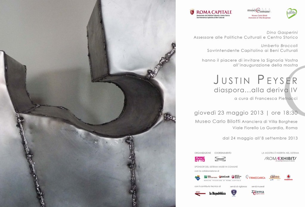 Concepite come un progetto itinerante, le grandi sculture di Justin Peyser sono arrivate in Italia via mare, salpando dal porto di New York e attraversando la penisola in un susseguirsi di simboliche derive e di concreti approdi. Esposte a Ca’ Zenobio di Venezia, al Maschio Angioino e al Palazzo delle Arti di Napoli, al Museo MAB e al Palazzo dei Bruzi di Cosenza, verranno ora presentate a Roma, dal 24 maggio all’8 settembre 2013, presso il Museo Carlo Bilotti - Aranciera di Villa Borghese (conferenza stampa e inaugurazione 23 maggio 2013), su iniziativa di Roma Capitale Assessorato alle Politiche Culturali e Centro Storico - Sovrintendenza Capitolina ai Beni Culturali.