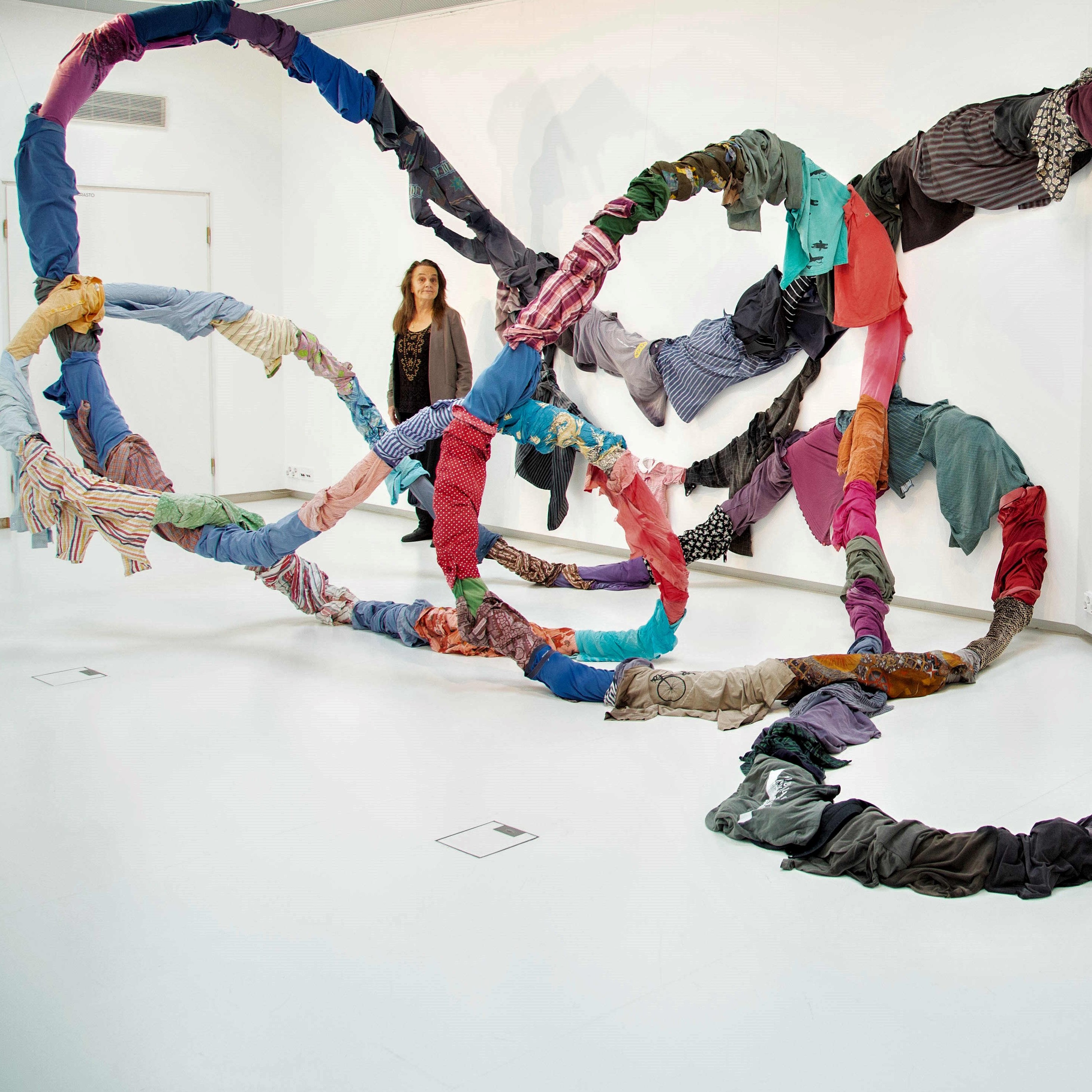 Gli spazi della galleria M77 e il Colonnato della Rotonda di via Besana sono teatro di due grandi installazioni site-specific e di una selezione di opere recenti, composte da vari elementi di vestiario, frammenti di storie, in una sorta di evocazione di esperienze individuali e collettive.